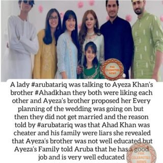 Aruba accused Ayeza Khan of being a “bitter sister-in-law” who was allegedly responsible for her breakup with Ahad. According to Aruba, she was once engaged to Ahad, but their relationship ended due to Ayeza’s interference. She claimed that Ayeza was too controlling and did not approve of her as a bride for Ahad.
