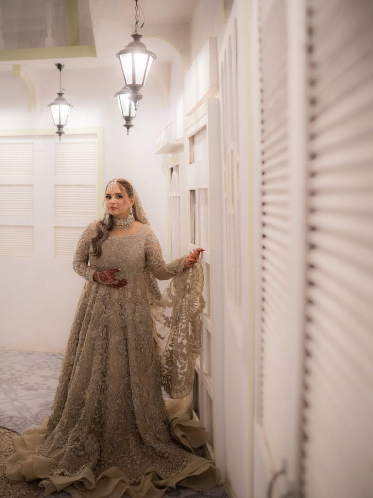 • The bride’s champagne lehenga symbolized simplicity mixed with elegance.