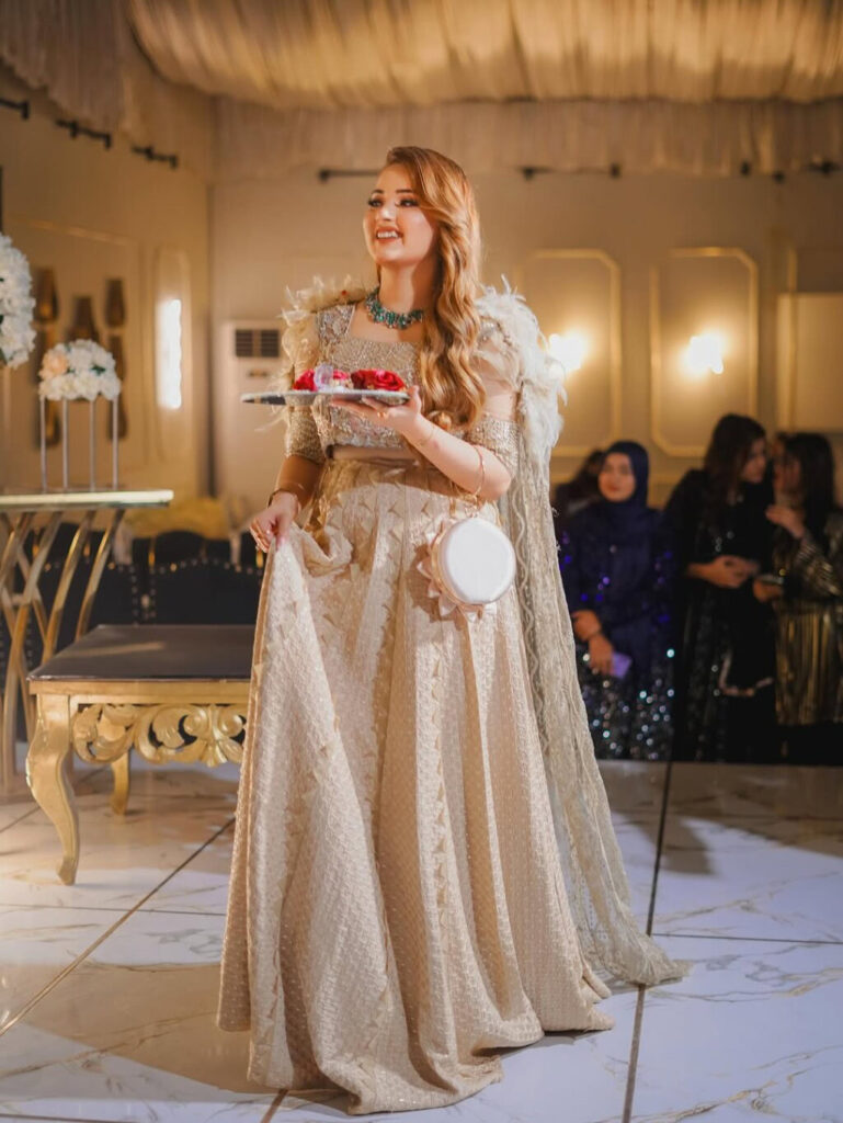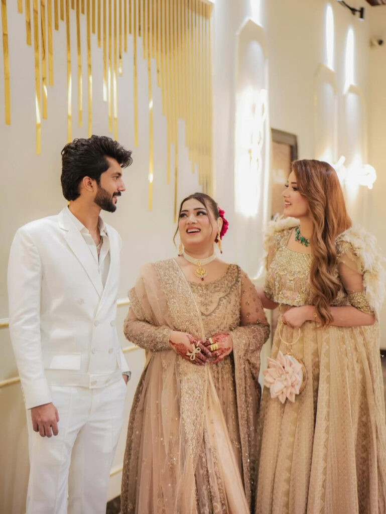 • Rabeeca Khan’s Look: Rabeeca chose a beautiful champagne-toned outfit that blended perfectly with the bride’s attire, highlighting her effortless style.