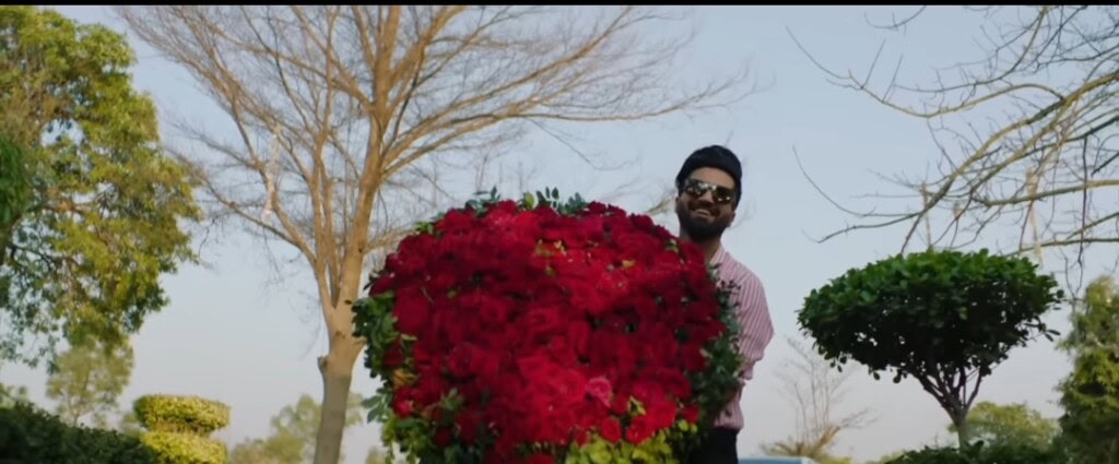 A new video from the shooting set of Falak Shabir’s music video Chahat Meri is currently going viral. In the clip, Falak surprises Sarah with a huge bouquet of fresh roses. The moment feels warm and sincere, showing how he always finds ways to celebrate his partner.