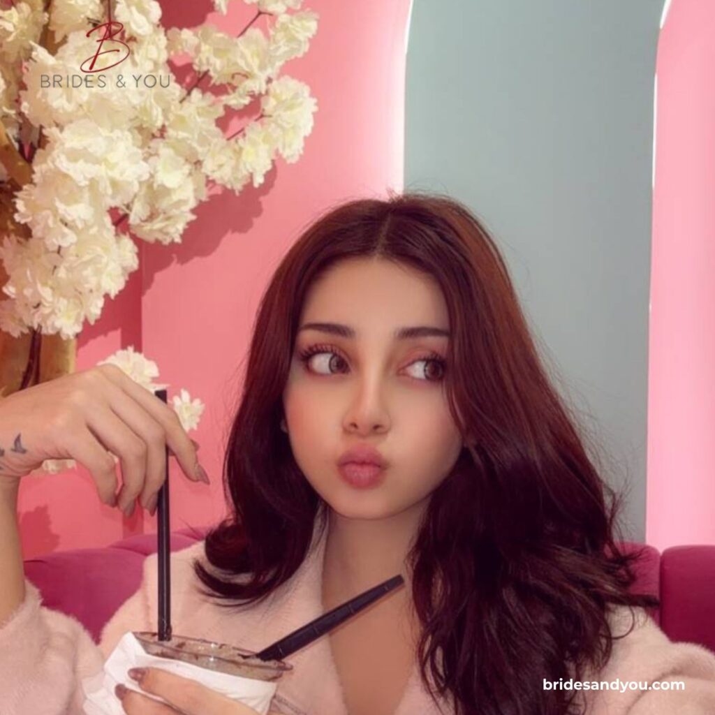 In the photo, Alizeh Shah sits comfortably against a warm wooden background. Her relaxed posture adds a natural charm and shows quiet confidence. The deep wine-colored outfit brings softness and depth to the frame without looking heavy.