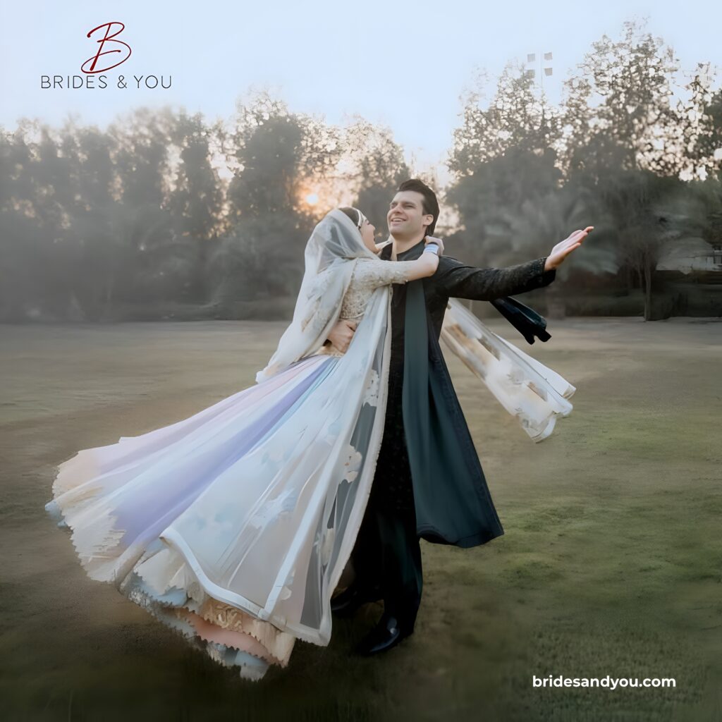 Both opted for white traditional outfits, symbolizing purity and new beginnings. Hina wore a stunning pearl white gown with a sharara, designed by her brother Shoaib Khan under Nyra Couture. The outfit featured fine golden embroidery and detailed craftsmanship.