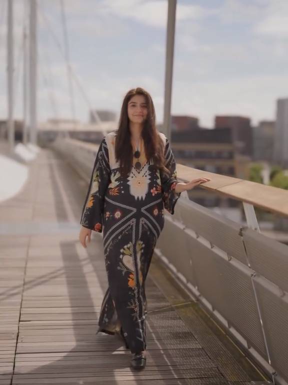 Pakistani actress Durefishan Saleem recently became the center of online discussion after sharing a stylish summer reel from London. The video showed her walking calmly on a wide wooden bridge, with bright sunlight, flowing wind, and a peaceful city view behind her. While many fans praised her look and confidence, some critics chose to react with jokes and teasing comments.