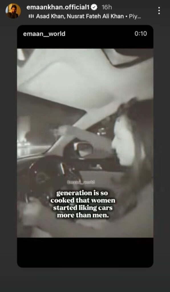 While Iman Khan has not directly addressed the situation, her Instagram stories seem to hint at emotional turmoil. The actress shared pointed messages criticizing men’s behavior and questioning misplaced ego and attention. One story humorously suggested that men’s attitudes are the reason women now prefer cars, while another sharply noted how excessive attention can distort self-worth.
