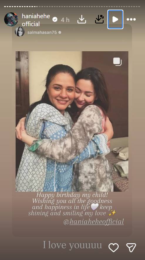 Zoya Nasir also joined in, posting a cozy picture cheek-to-cheek with Hania and wishing her continued success and happiness. Areeba Habib, Momal Sheikh, Salma Hasan, and several others shared hugs, throwback memories, and warm messages celebrating the actress’ vibrant spirit.