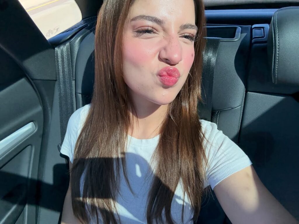 The young star recently shared a series of sun-kissed selfies taken from the passenger seat of a car, and fans can’t stop talking about the dreamy aesthetic. Bathed in warm evening light, Dananeer Mobeen kept it minimal yet striking. A structured black utility jacket paired with glossy berry lips and soft rosy blush created a look that felt polished but relaxed. It’s the kind of understated glam her followers instantly recognize.