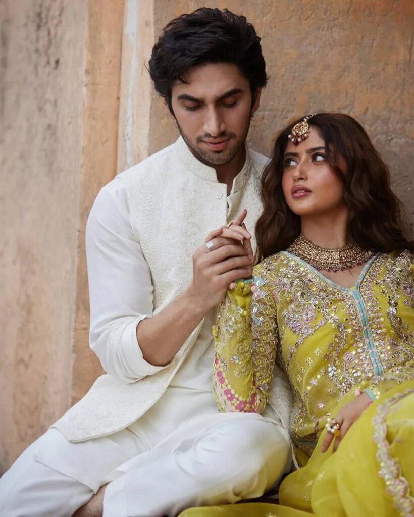 That single name was enough to ignite speculation online. Fans quickly linked “Saj” to his former co-star Sajal Aly, with whom he has shared screen space in Zard Patton Ka Bunn and Dil Wali Gali Mein. Their on-screen chemistry in both projects had already fueled rumors about a possible off-screen bond.
