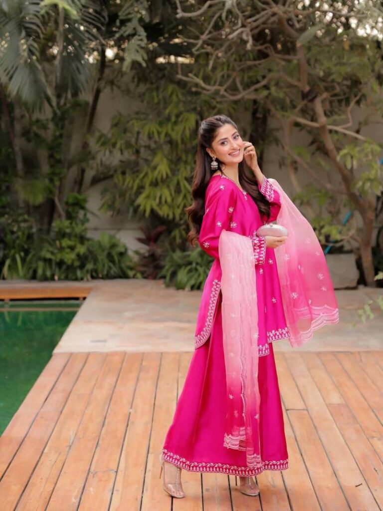 Pakistani superstar Sajal Aly is once again making waves online, and this time it’s all about her Sajal Aly hot pink look that has fans completely mesmerized. The actress recently shared a glimpse of her latest festive outfit on Instagram, instantly grabbing attention across social media.