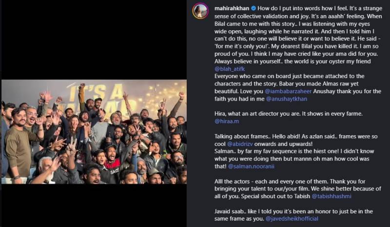 As the film continues its strong run following its Eid release, Mahira Khan took a step back to acknowledge the people behind the scenes who helped bring the story to life. Her message wasn’t just a routine thank-you it felt raw, reflective, and filled with genuine admiration for her collaborators.