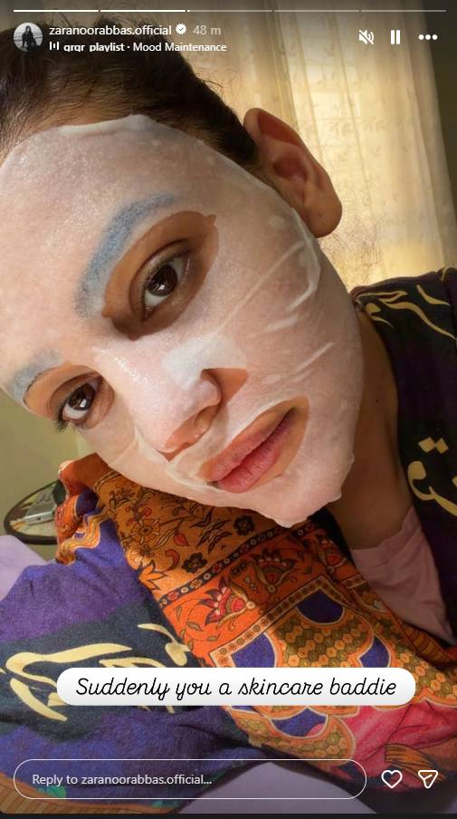 However, she also balanced emotions with humor. In a playful twist, Zara Noor Abbas shared a skincare selfie, embracing the trending “skincare baddie” vibe. This mix of sincerity and fun made her stories feel authentic and engaging.