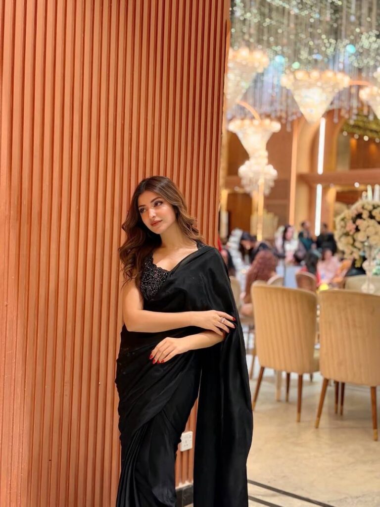 Draped in a sleek black saree, Kinza delivered a look that perfectly balanced tradition with modern glamour. Right from the first glance, her appearance exuded confidence, elegance, and a fearless attitude toward fashion.